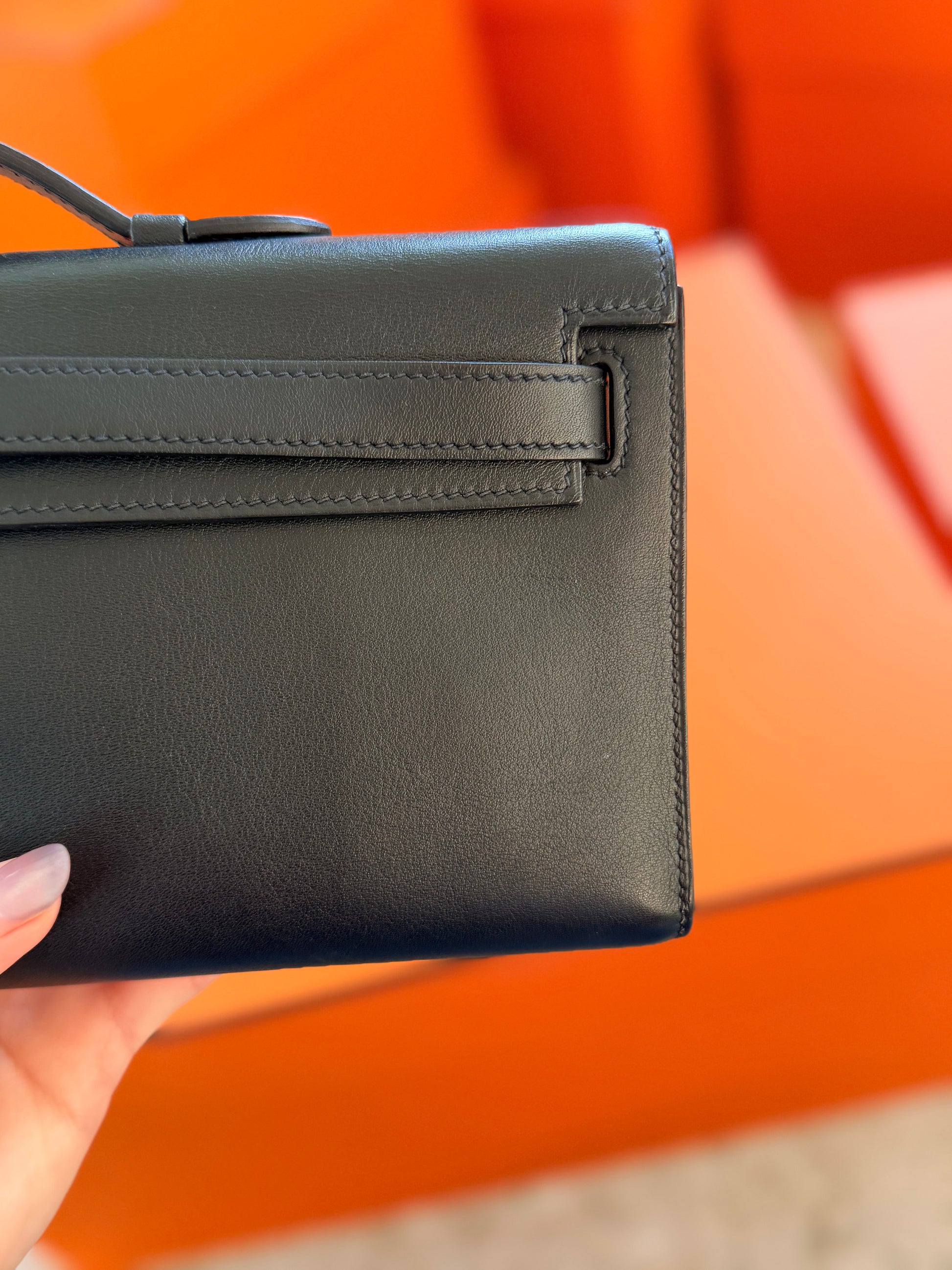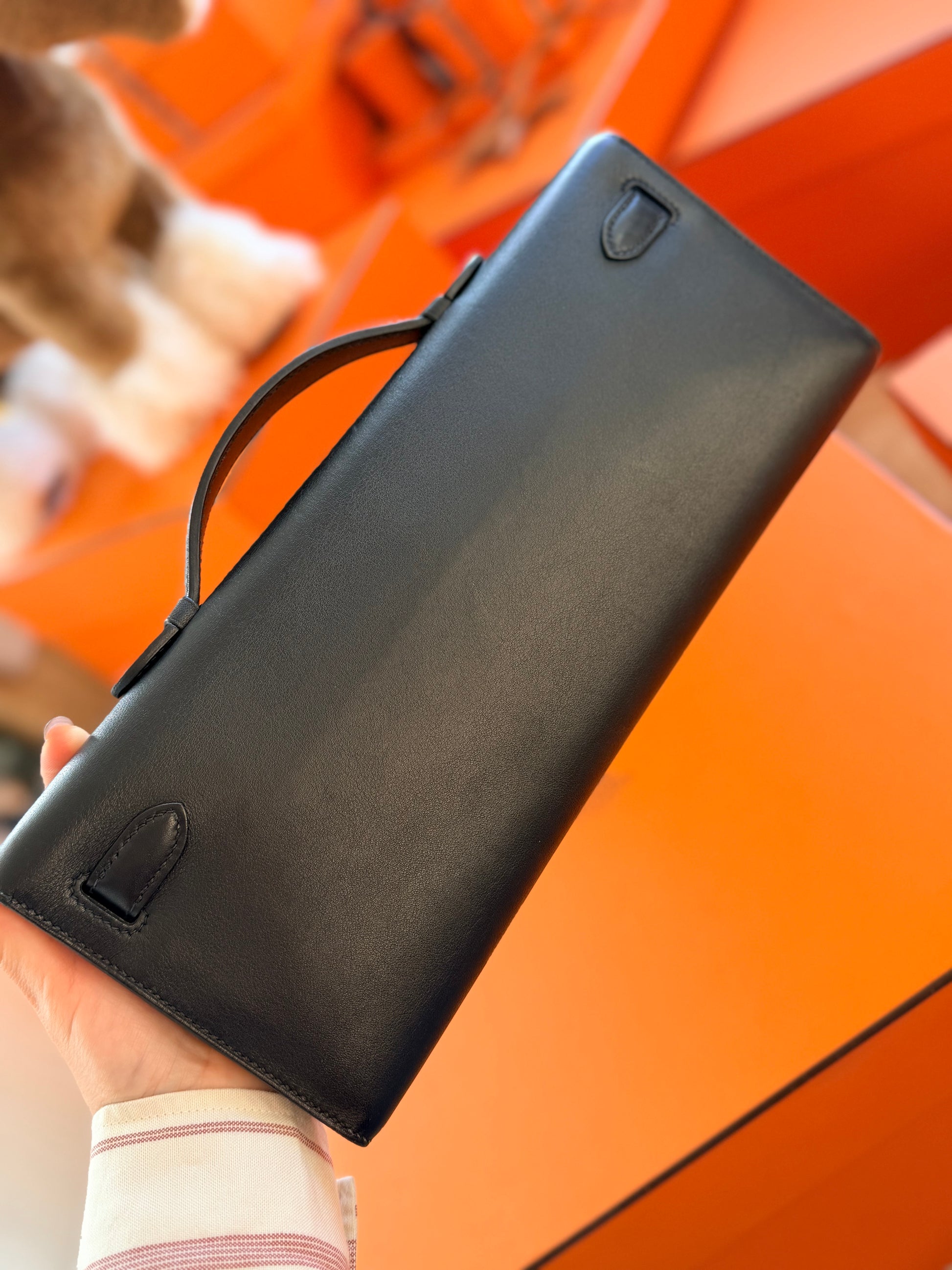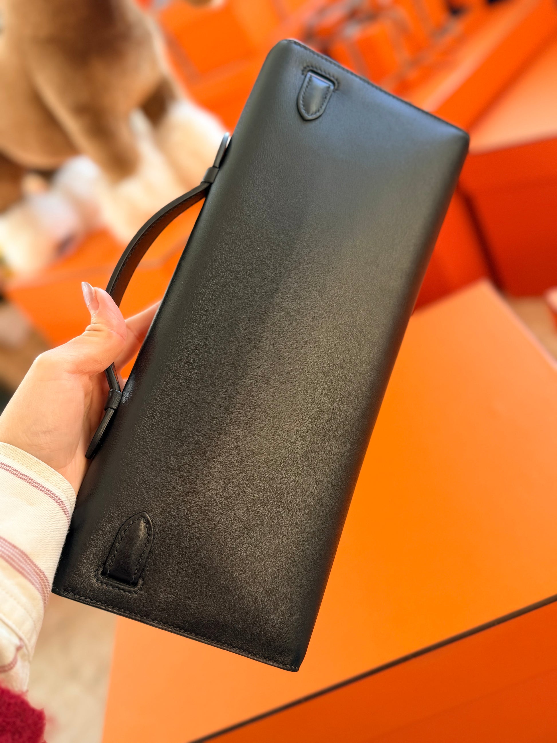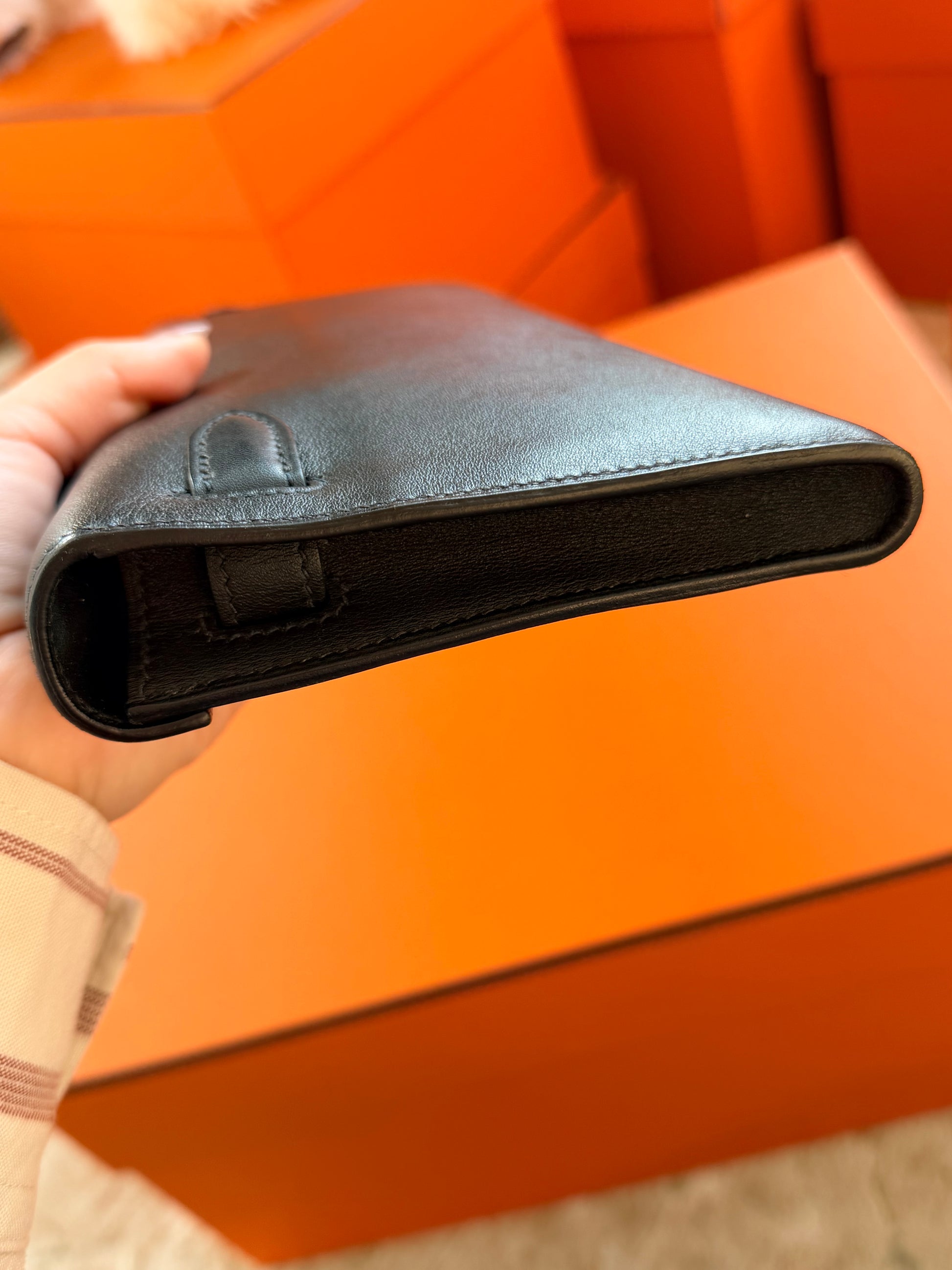Hermes Black Swift Kelly Cut Clutch Bag With Gold Hardware GHW