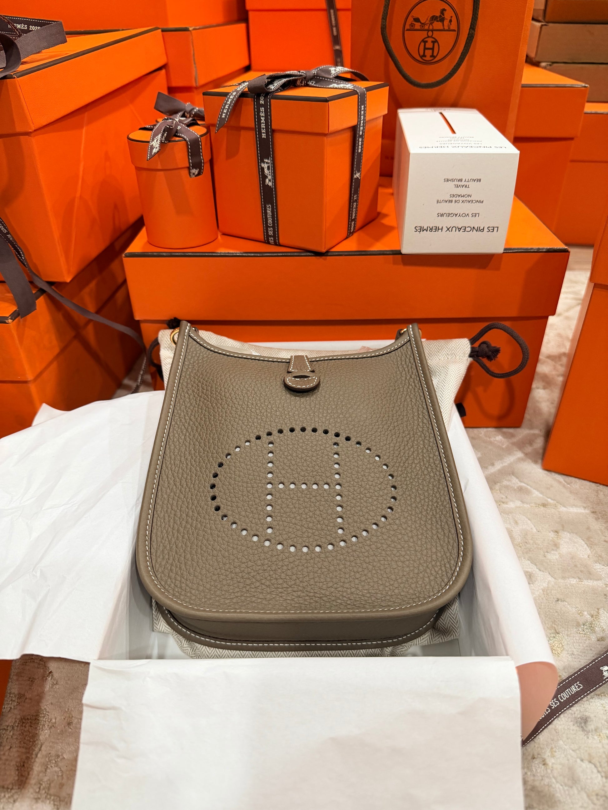 Hermes Mini Evelyne TPM 16 Etoupe Clemence Gold hardware Handbag
